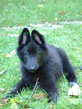 Dasha 11 weken oud. Ze vindt het heerlijk om lekker in de tuin te rommelen en op stokjes te kauwen. |
