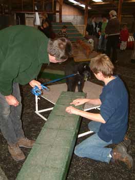 ![]() Eén van de onderdelen van de Puppy-Agility was de wip. Eerst helemaal op de grond en later zelfs op een onderstel. Dat ging vlekkeloos. Dasha ging er zonder problemen en zonder angst overheen. |