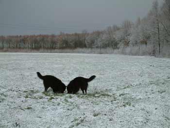 "Heb jij die sneeuwbal al gevonden? Hij moet hier ergens liggen...?"