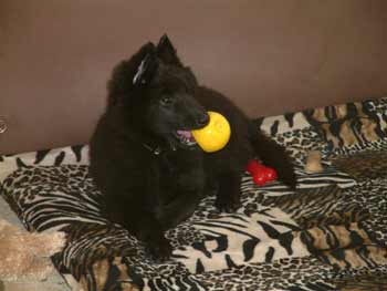 ![]() Met haar favoriete piepballetje. |