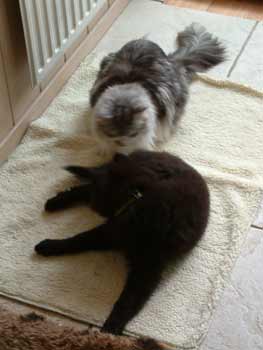 | Kalish heeft nu al door dat ze bij de ene kat (Tessy)