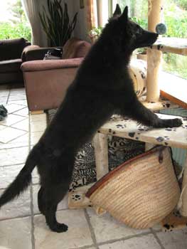 Auke doet Kalish na. Die staat ook altijd op de kattenkrabpaal om naar buiten te kijken |
