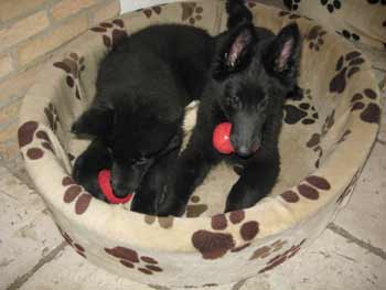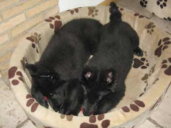 ![]() En dan zijn ze moe en gaan beschut onder de stoelen slapen |
