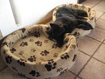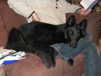 ![]() Kalish zoekt het hogerop bij Thea op de bank. Eigenlijk mogen ze bij ons niet op de bank... maar ach, zo'n lief klein ding... |