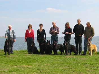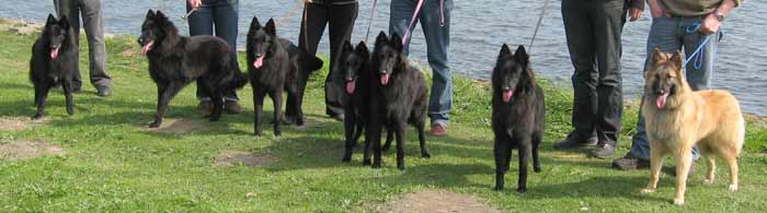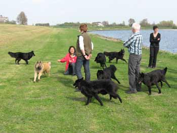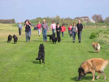 | Thea en Kalish zijn naar de nestreünie van Kalish (het K2-nest van kennel Marajuyo) geweest. Vergeleken de strandwandeling van januari was Kalish een stuk vrijer. Ze speelde lekker met de andere honden en was ook niet al te moeiljik naar de mensen toe. Vader en één zusje ontbraken. Moeder en zes van haar zeven kinderen waren er wel. Verder was er een "gast-tervueren" |