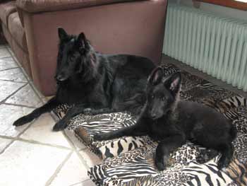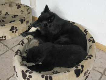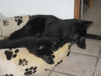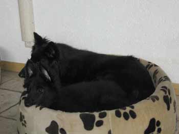 ![]() Ace en Kalish, allebei kluivend op een botje |