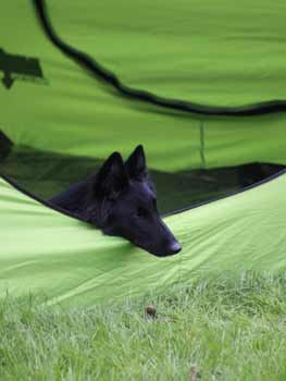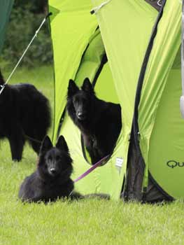 ![]() Dasha in en Kalish buiten onze nieuwe tent |