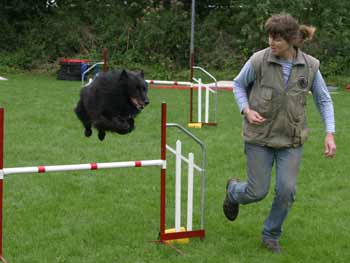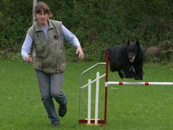 ![]() Hier springt hij veel te hoog. Dat komt waarschijnlijk doordat hij recentelijk alleen de 1-meter hoge IPO-sprong gewend is. |