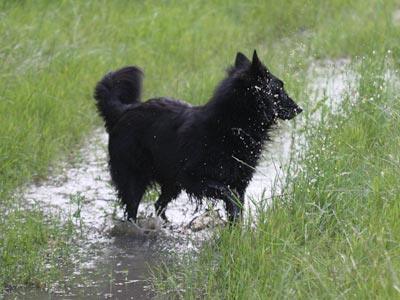 ![]() Ace geniet van een "verfrissende" modderplas |