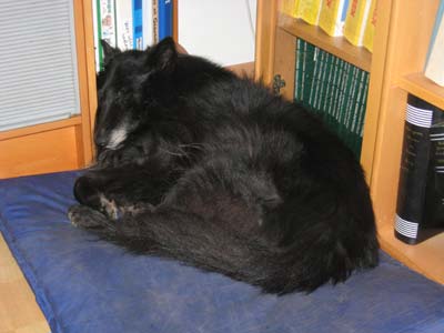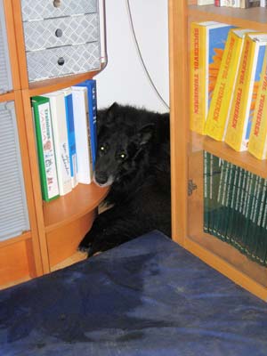 ![]() Dit lijkt me toch wat meer ontspannen... Het hoekje rechtsboven op deze foto is waarin hij op de bovenstaande foto's ligt |