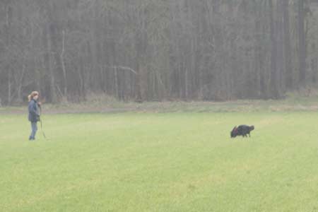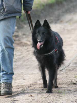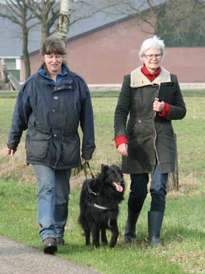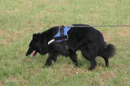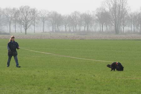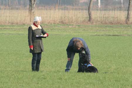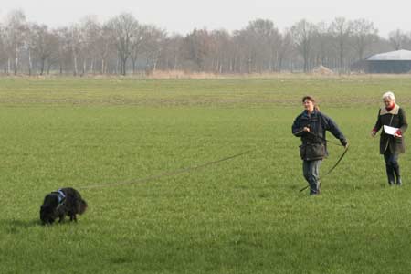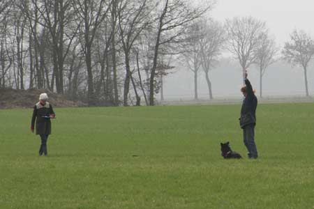 ![]() Dasha aan het begin van haar spoor (achter mij resp. de keurmeester, examenleider en spoorlegger) |
