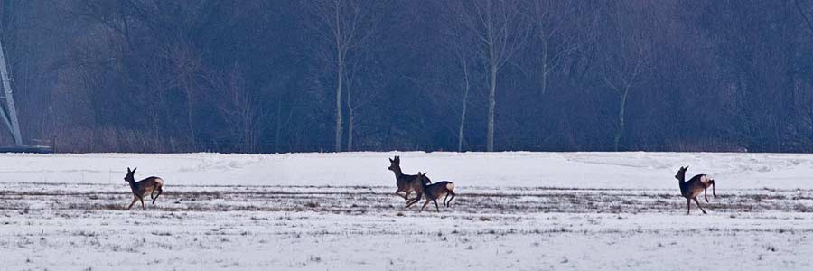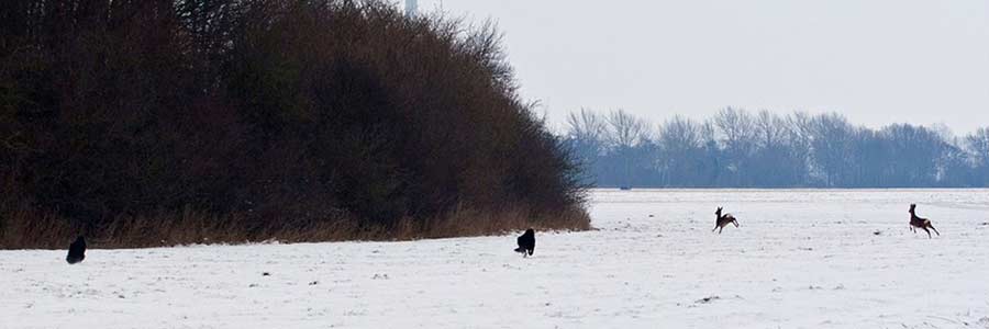 ![]() Net toen de honden de auto uit waren, schoten er 4 herten weg (2 zie je bij de bosrand) |