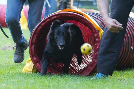 Ace doet weer mee met de agility-wedstrijd tijdens de Franse speciale. Hoewel de resultaten niet super zijn, loopt hij toch goede rondjes. |