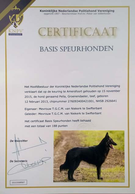 Certificaten KNPV-speurhonden Kalish en Pella