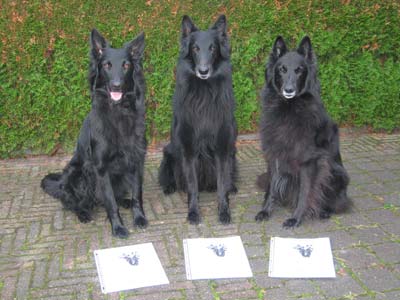 Kalish, Ace en Pella doen examen Reddingshonden Geschiktheid Vlakterevieren. Ze slagen alledrie. De verrassing van de dag is Ace, die ondanks veel minder training het beste resutlaat neerzet. |