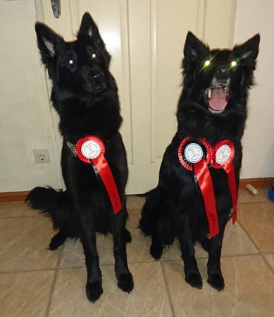 Tijdens de clubmatch van de NVBH heb ik een druk programma: Pella en Ace lopen beide goed in de agility, Pella wint zelfs de 2e prijs op de jumping. Pella loopt haar eerste OB3 wedstijd en wint deze en Ellis loopt niet onverdienstelijk in haar eerste OB1-wedstrijd. |