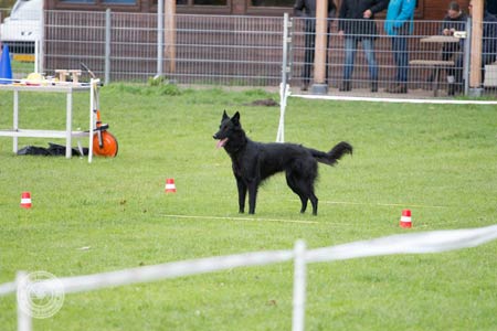Pella loopt goed in de obedience, maar er gaat steeds wel ergens iets fout, waardoor de hoge scores uitblijven. In de wedstrijd van AKC Waterland klopt het wel en behaalt ze op een half punt na een uitmuntend. Een half punt tekort voor een eerste kwalificatie voor het FCI-WK! Ze behaalt wel de derde prijs. En de score is zo hoog, dat ze nog maar één ZG nodig heeft voor kwalificatie voor het FMBB. |