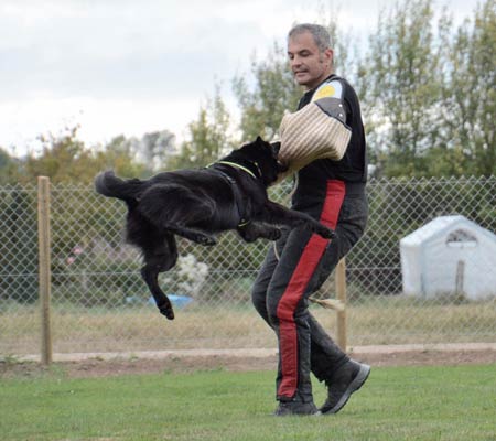 Ongepland en ongetraind besluit ik met Pella mee te doen met het examen bij WHG Stroe voor IPO 2. Ze doet het supergoed! Als een van de weinige slaagt ze voor het speuren. Bij het appèl krijgt ze veel aftrek voor het direct naastkomen met het apport (wat ik haar voor de Obedience aangeleerd heb). Het manwerk doet ze beter dan wie dan ook verwacht had! Echter, doordat ze steeds van de mouw vliegt (maar wél altijd terugkomt!) zakt ze. Maar o, wat deed ze het goed en wat ben ik trots op haar! Het bevestigt mijn idee: ze kan het wel, ze moet alleen anders getraind worden. Maar ja, waar... |