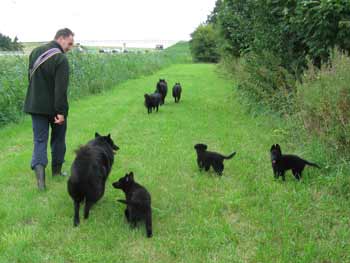 ![]() Wandeling met de hele familie: 4 volwassen honden en de drie resterende puppies |