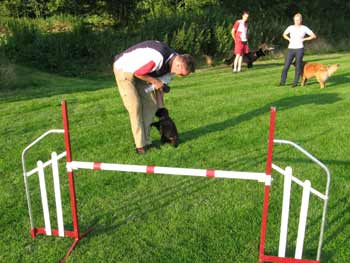 ![]() Even een geintje: eeste behendigheidsles voor Auke |