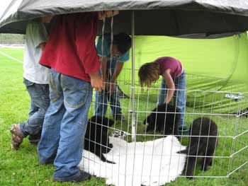 | 03-08-2008 | De puppies zijn vandaag meegeweest naar de NVBH-G&G-wedstrijd en hebben niet te klagen gehad over aandacht! (zie foto's) |