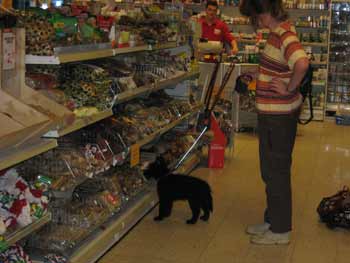 ![]() Honden-walhalla...oftewel de dierenspeciaalzaak met een rek vol speeltjes en kluifjes |