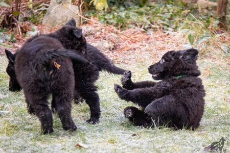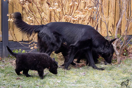 | 28-01-2021 | De puppen zijn voor het eerst in het dorp geweest. Ze lieten zich heel goed zien! Door de kou en nattigheid waren ze wel nogal bibberig na afloop, maar thuis waren ze snel weer opgedroogd, opgewarmd en blij. |