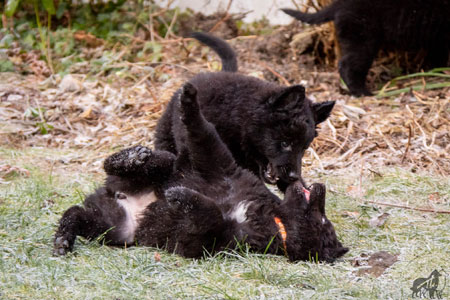 | 03-02-2021 | De puppen zijn vandaag weer ontwormd. Morgen vertrekken de eerste twee naar hun nieuwe baasjes. Ze vonden het daarom blijkbaar nodig om alvast de kennel van Ellis af te breken. 's Morgens toen ik beneden kwam was het zeil al deels opgerold... |