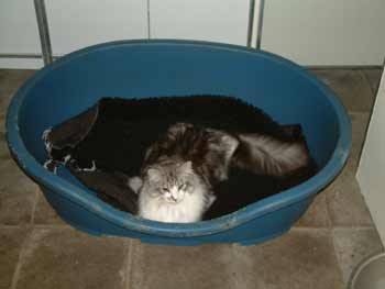 Is Timber in een identiteitscrisis beland? Waar je mee om gaat wordt je door besmet zeggen ze.... Hoe dan ook, hier ligt hij in de hondenmand in de garage. Daar mag hij eigenlijk niet komen, maar als hij kans ziet, glipt hij naar binnen. En hier doet hij alsof het allemaal zo hoort. |