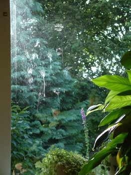 probeert hij het ongedierte tegen het raam plat te drukken. En dat is dan dus naderhand goed zichtbaar...