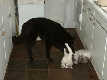![]() Wel moet Dasha in de gaten gehouden worden dat ze niet te ruw speelt |