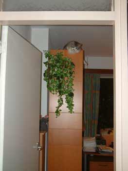 Op meer dan 2 meter hoogte, bijna tegen het plafond aan! Ach ja, het blijft een een rare kwibus...