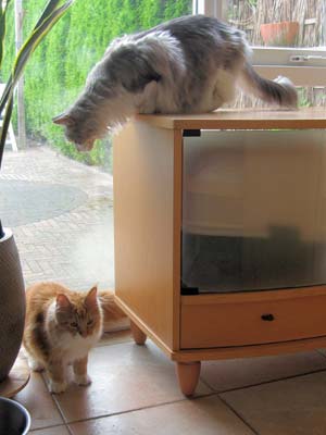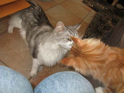 Kennismaking tussen Timber en Caspian(08-06-2011) Na wat dagen de kat uit de boom gekeken te hebben, begint de kennismaking tussen Timber en Caspian