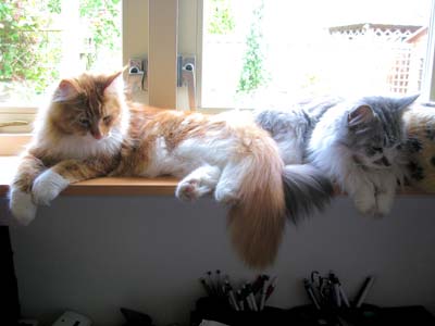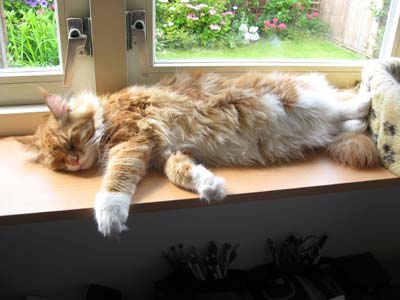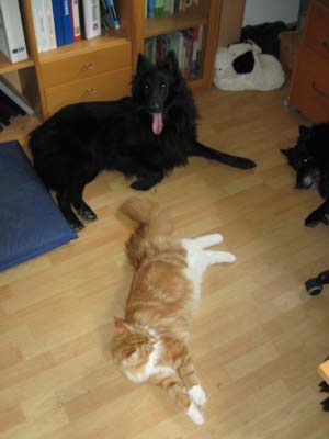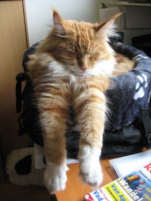 ![]() Hier ligt hij op schoot, terwijl ik achter mijn bureau zit |