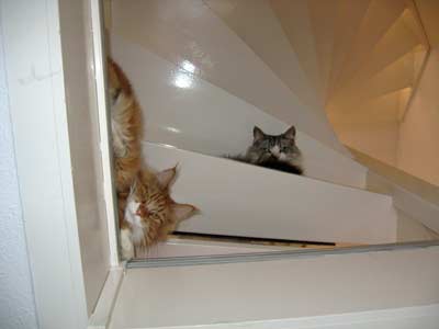 Als de honden met veel tamtam op stap gaan, kijken de katen van veilige hoogte minzaam toe op het gedoe ...