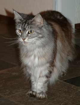 Nog een mooie foto van Tessy. Tegen een donkere achtergrond (hier onze plavuizen) is ze heel fotogeniek. Hier is ze ruim 10 jaar (26 sept. 2003).