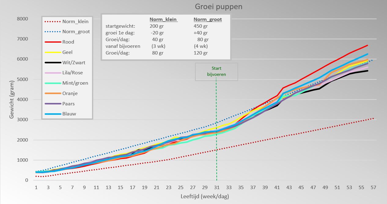 Ook de grafiek met wegingen is weer bijgewerkt: